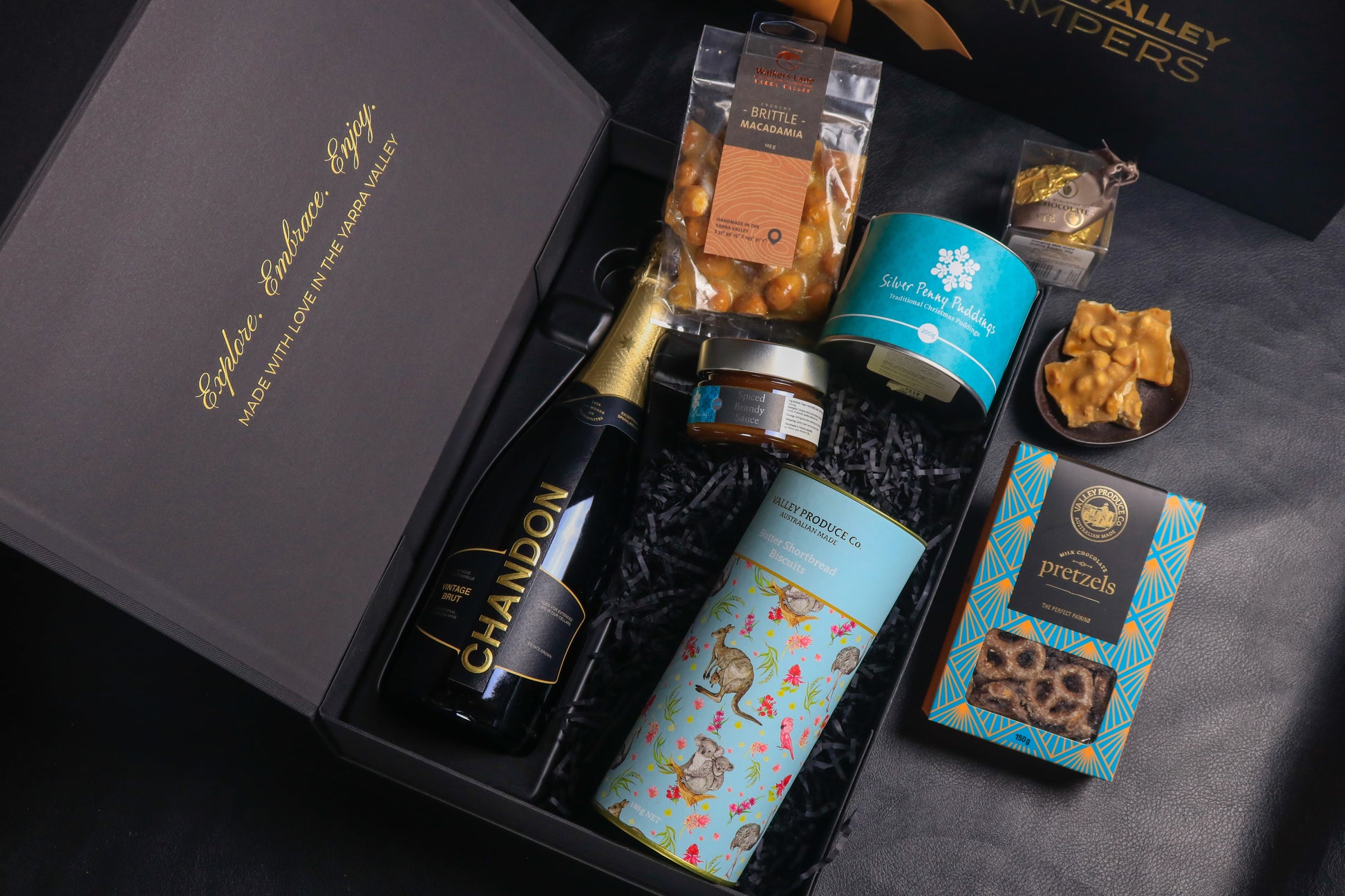 This hamper includes Chandon's Vintage Brut, recently awarded 96 points in Halliday's wine companion, and is the heart & soul of Chandon. Silver Penny Puddings provides a Christmas classic with their Traditional Christmas Pudding, with more than enough Brandy Sauce to go with. Valley Produce Co's Butter Shortbread in a keep-sake tube is a great addition to any Christmas selection.